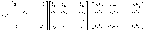 D==diag(d1,d2,...,dn)=[ d1 d2 ... dn]