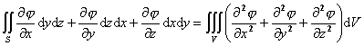 式中S为空间区域V的边界曲面,为两个标函数,在S上具有连续偏导数,且在V上具有二阶连续偏导数,为拉普拉斯算子,特别
