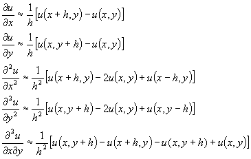 差分法是常用的一种数值解法.它是在微分方程中用差商代替偏导数,得到相应的差分方程,通过解差分方程得到微分方程解的近似值.