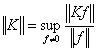 则称K为有界算子,式中表示函数f的范数()。使上面不等式成立的一切M的最大下界称为算子K的范数,记作,它也可以定义为