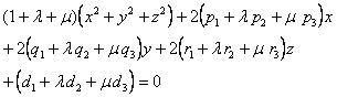 l,m,n变动时,这个方程表示一个平面把,由此二次曲面的直径平面组成一个平面把.把内任一平面都通过下列三个平面的交点: