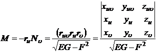 ds2=Edx22fdxdy+Gdy2 式中 E=1+ F= G=1+ ds为点M(x,y,z)处的弧的微分,ds2称为第一基本二次型,E,F,G称为第一基本量 ds2= 式中 E= F= G= 第一基本量E,F,G都在点M处取值. 曲面上每点(奇点除外)的第一基本二次型是正定的,即 E>0,G>0,EG-F2>0 |