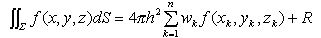 式中对于不同的积分区域Ω选取不同的常数,是求积系数,R是余项.