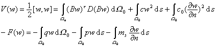 积分式中出现位移函数w的二阶偏导数,与平面问题仅出现位移函数u,v的一阶偏导数有本质上的不同.