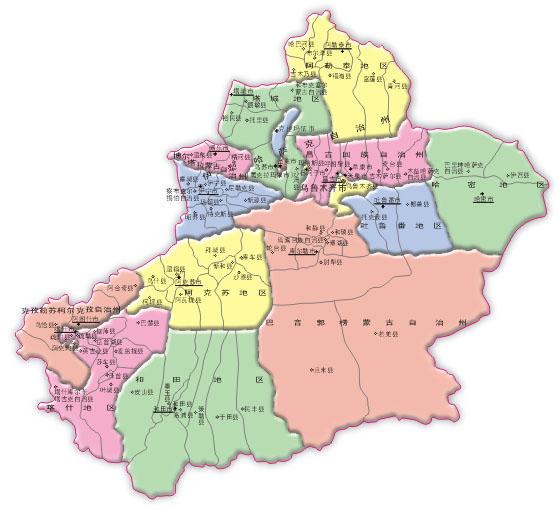 TheXinjiang Uygur Autonomous Region area more than 1.6 million square kilometers, govern 7 local, 5 autonomous prefectures, 2 places levels cities, 11 municipal districts, 17 county level cities, 62 counties, 6 autonomous counties. Altogether includes 230 towns, 589 townships, 43 ethnic townships, 38 subdistrict offices. The capital is Urumqi.
