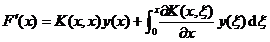 can be transformed into Volterra integral equations of the second kind. Under the assumption that the kernel is continuously differentiable, there are two transformation methods. One way is to take the derivative on both sides of ( 1 ) to get![]()