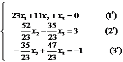 Substitute x n into the n -th equation, solve it , and then substitute x n into the n -th equation to solve , ... , and finally substitute the solved x 2 , x 3 , ... , x n into the first Solve the equations for x 1 .![]()