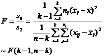( 4 ) The confidence limit can be found from the F distribution table (degree of freedom is ( k -1, n - k ) ) , which satisfies![]()