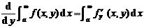 [ Differentiation under the integral sign ]    If f ( x , y ) is continuous in the bounded region R ( axA , byB ) , and there is a continuous partial derivative (x, y) , then when b < y < B ,